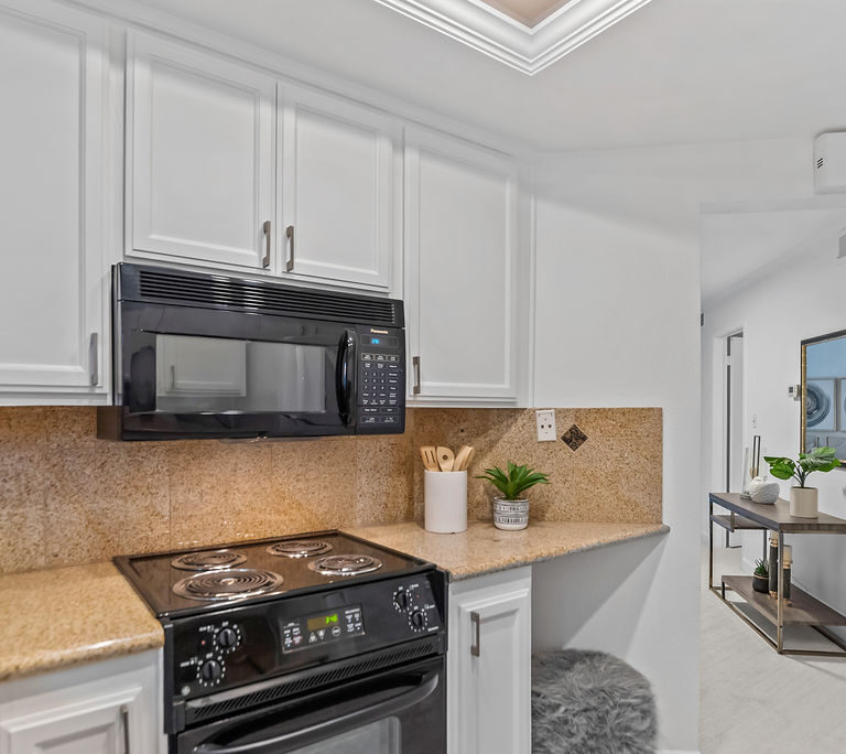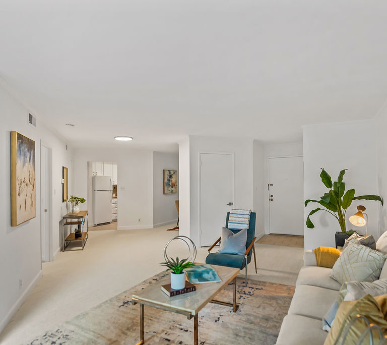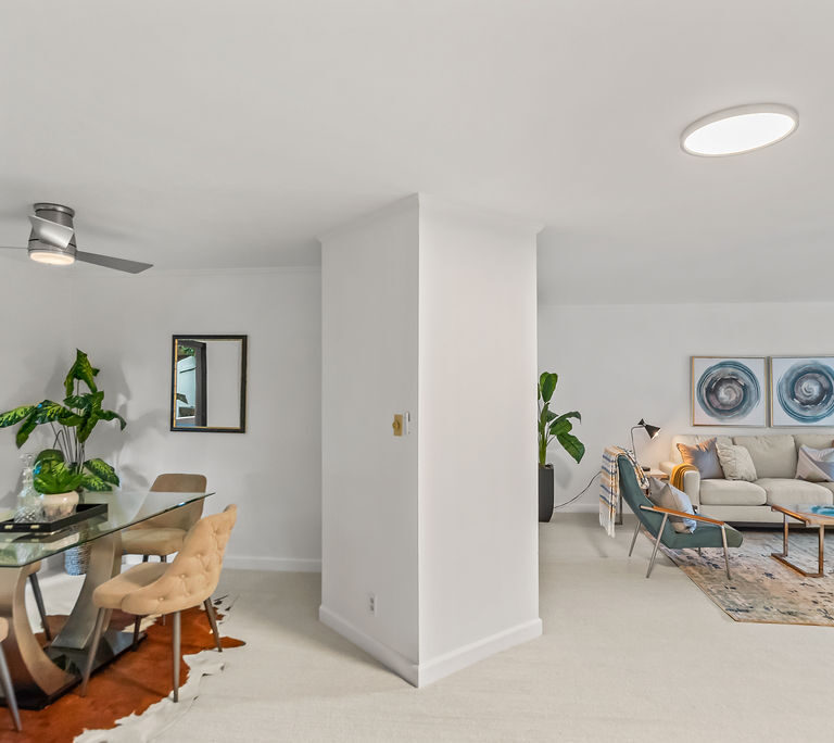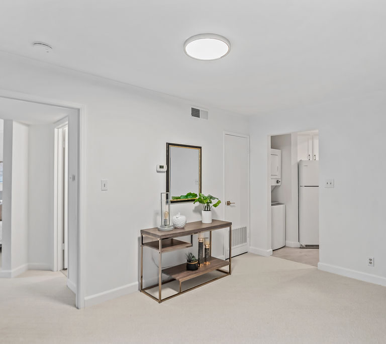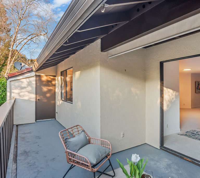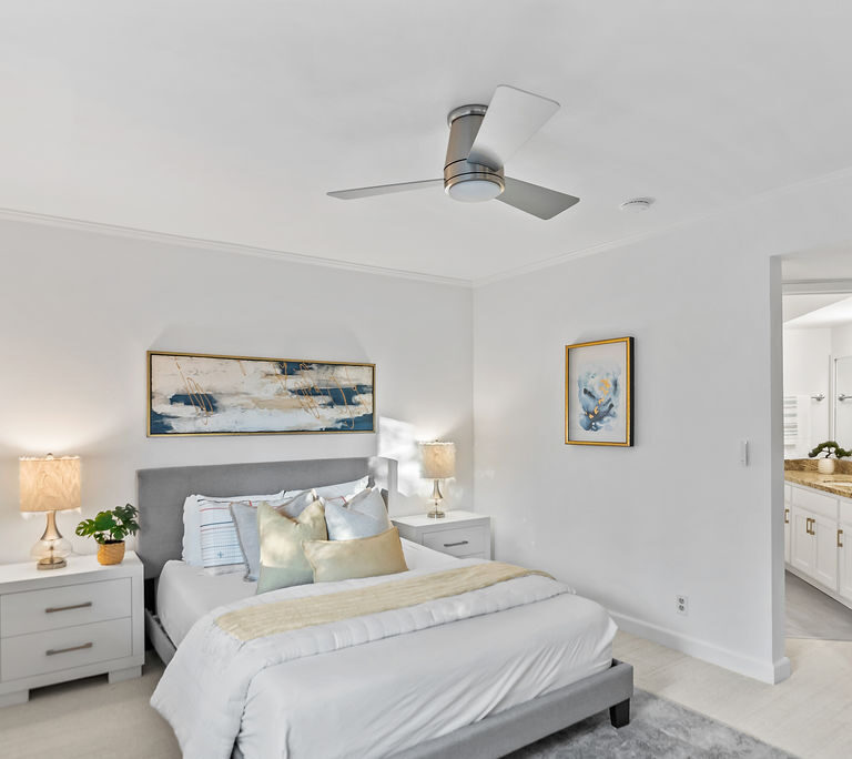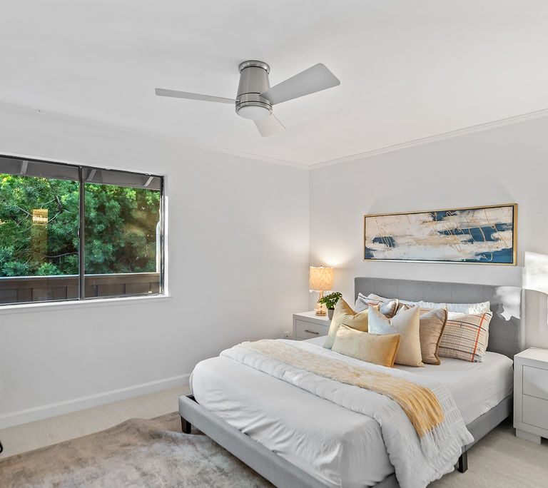 The spacious primary suite offers comfort and privacy, along with an updated vanity area with generous counter space. Enjoy indoor-outdoor living on two balconies: one extra wide balcony with closet storage + plenty of room for two seating zones, or a seating area plus space for yoga, art, or hobbies.